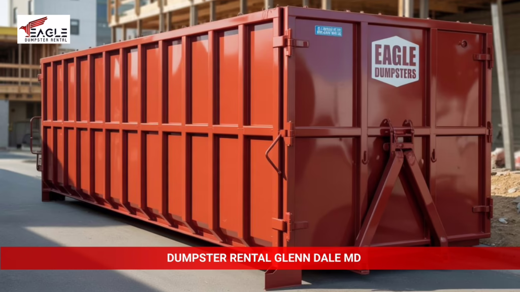 Searching for dumpster rental services near me in Glenn Dale, MD? Eagle Dumpster Rental provides affordable and efficient dumpster rental solutions for residential, commercial, and construction projects throughout Prince George’s County, whether you’re handling a home cleanout, demolition, or managing debris from a large-scale renovation. Renting a dumpster streamlines waste disposal.